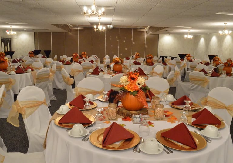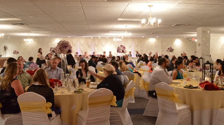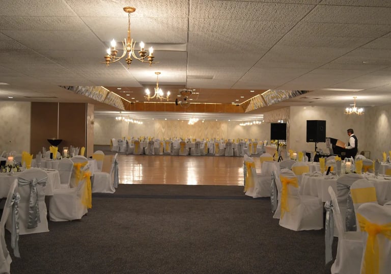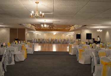 Spacious banquet hall for weddings and parties.