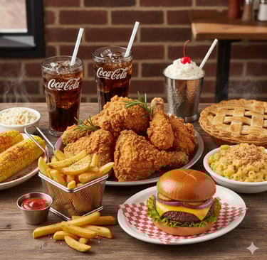Enjoy classic American favorites such as Burgers, Fries, Grilled Chicken, Sandwiches, and Salads, all made fresh and served with love. Perfect for casual dining, parties, or catering events.